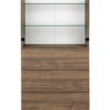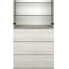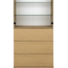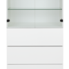 Ylhäällä kaksi lasihyllyä sekä alaosassa kolme ponnahduslaatikkoa
