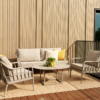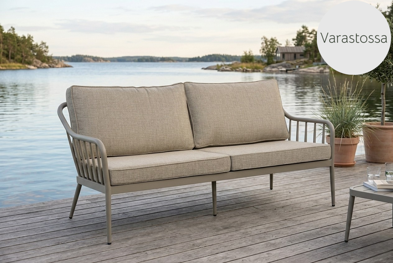 Brafab Coleville on moderni ja sirolinjainen 3-istuttava ulkosohva, jossa yhdistyvät klassinen pinnatuolien estetiikka ja nykyaikaiset materiaalit. Khakin sävyinen kokonaisuus on luonnonläheinen ja hienostunut valinta, joka sulautuu saumattomasti suomalaiseen terassi- ja puutarhamaisemaan.