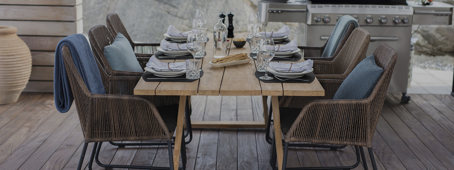 Brafab Laurion on näyttävä ja vankka ulkoruokapöytä, joka tuo luonnonlämpöä ja skandinaavista arvokkuutta terassille. Se on suunniteltu niille, jotka arvostavat aitoja materiaaleja ja kestävää muotoilua.